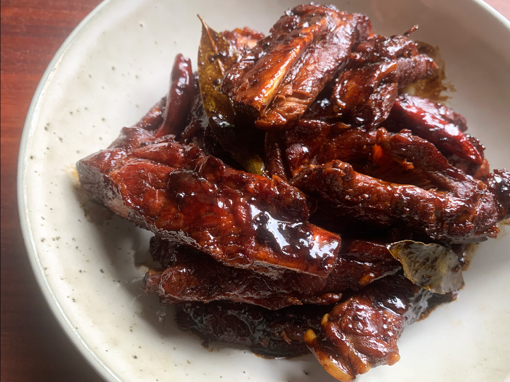 My daughter gave me a large chunk of Pork Ribs. I planned to bake it, but the weather was just too hot and I didn’t want to use oven. I don’t have BBQ. So, I just simmered them in a pot like my ‘Adobo Inspired Pork Kakuni’. This might be the easiest method to cook …