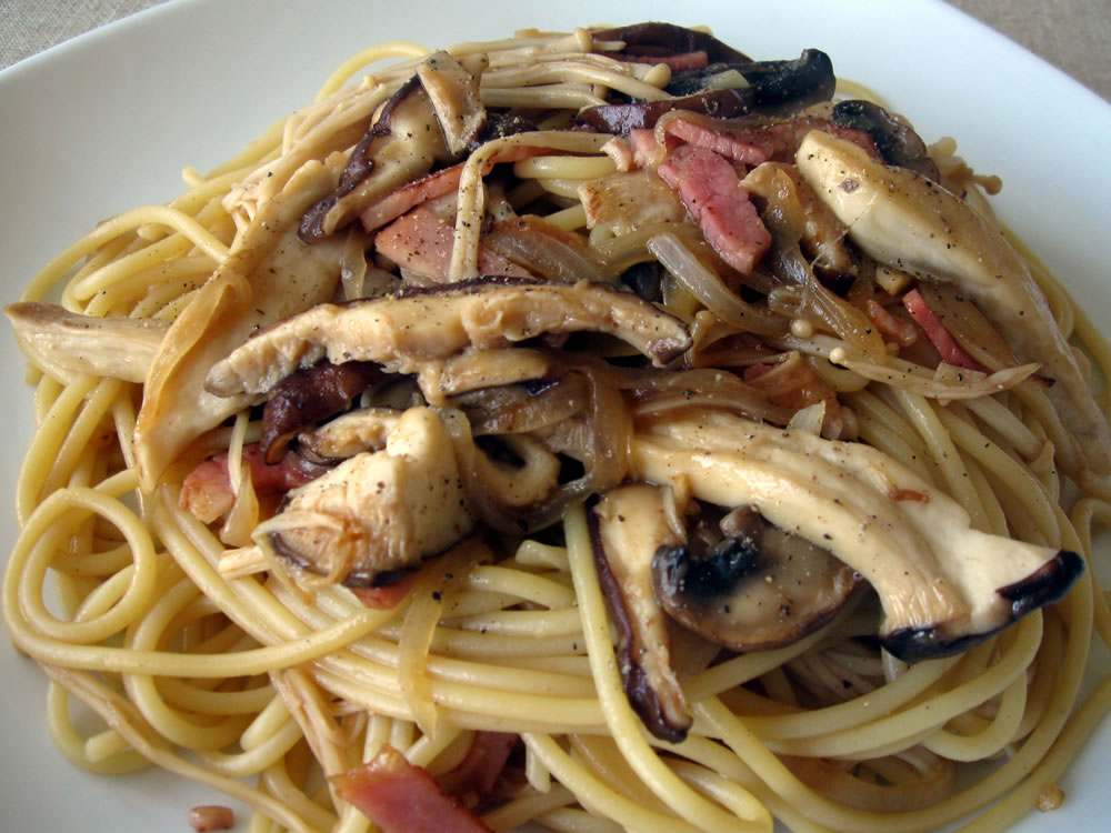 ‘Kinoko’ means mushrooms. Use any Asian mushrooms such as Shiitake, Shimeji, Enoki, Oyster Mushrooms, King Oyster Mushrooms (Eringi) , and plenty of them! Makes 4 Servings Ingredients 300 to 400g Spaghetti100g Shiitake *sliced100g Shimeji *torn into smaller pieces100g Enoki *torn into smaller pieces1 Onion *thinly sliced1 to 2 cloves Garlic *finely chopped1 tablespoon Oil100g Bacon20g …