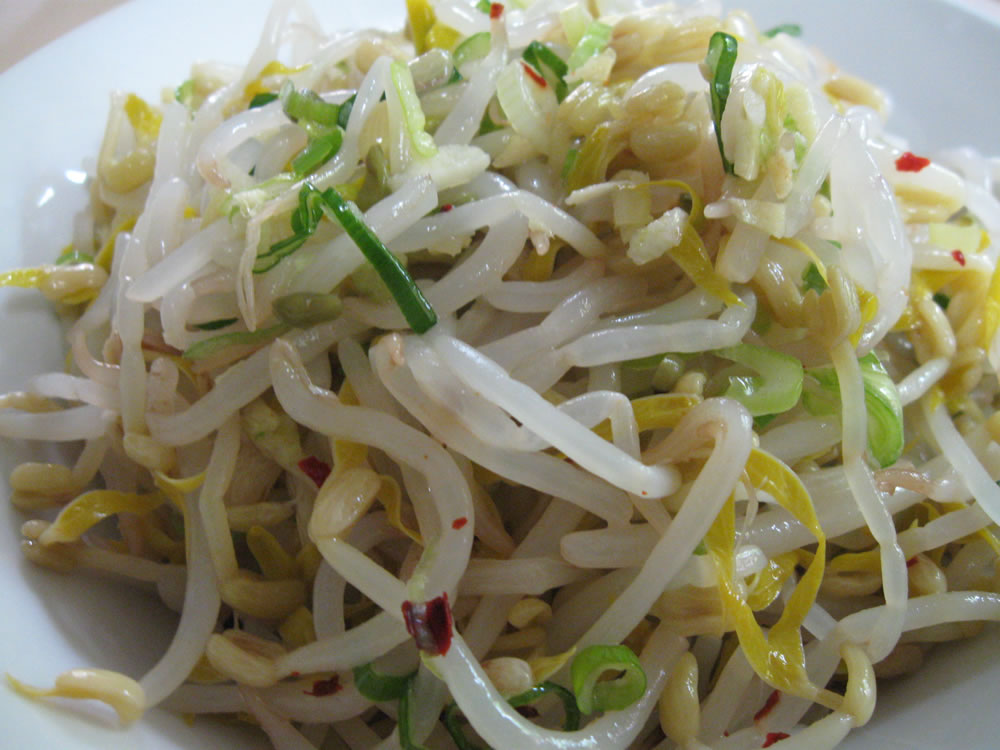 When I made ‘Soybean Sprouts Namul’ using the ordinary Bean Sprouts, I found it was lacking something. I added Soy Sauce and Toban Djan (Chilli Bean Sauce) to make its flavour stronger. Do not over cook Bean Sprouts. They should stay quite crunchy. Makes 2 Servings Ingredients 1 bag (250g) Bean Sprouts1 Spring Onion *finely …