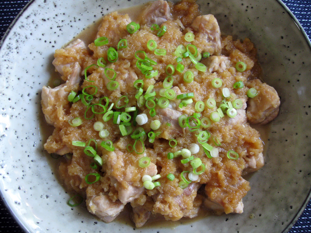 Finely grated Daikon (White Radish) has a resemblance to Sleet that is called ‘Mizore’ in Japanese. When meat or fish are cooked in a sauce with finely grated Daikon, the dish is called ‘Mizore-ni’ that literally means ‘cooked in the sleet’. This dish’s Japanese name is ‘Tori no Mizore-ni’, Chicken cooked in the Sleet. Makes …