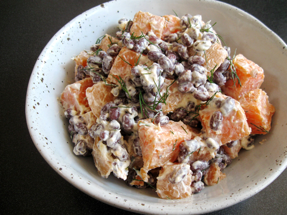 Because I have been cooking Ukrainian dishes lately, I always have Sour Cream and Dill in my fridge. I just mixed leftover Azuki Beans and steamed Sweet Potato with Sour Cream. I also added Dill. This dish is something I would never have thought of making if I hadn’t cooked Ukrainian dishes. New something often …