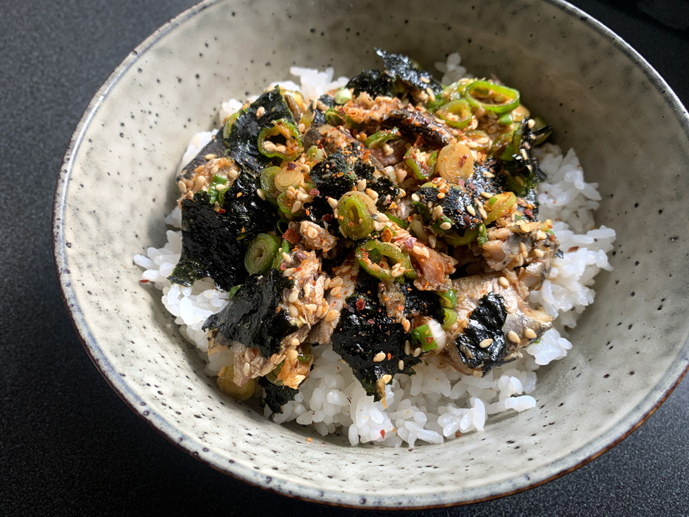 I was a big fan of a Japanese author who wrote many books on his travels, often in the places totally secluded from the world. One day, he cooked Rice, put canned Sardines and Nori on top of the Rice, then drizzled with some very precious Soy Sauce that he was carrying around. The description …