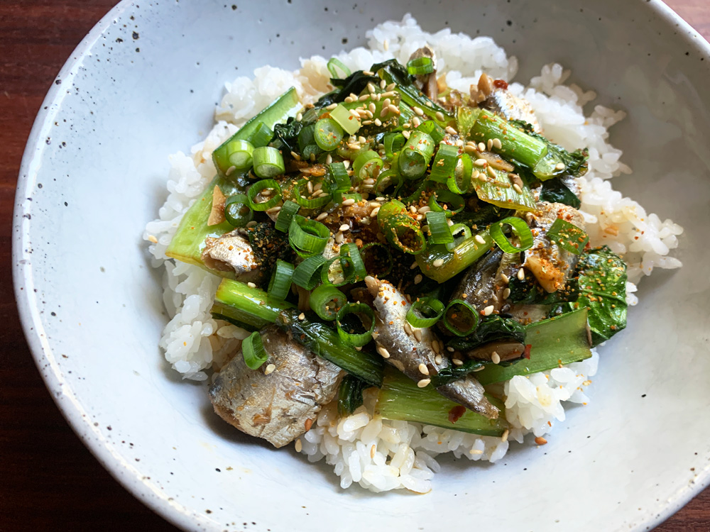 Garlic Sardine & Choy Sum Rice Bowl