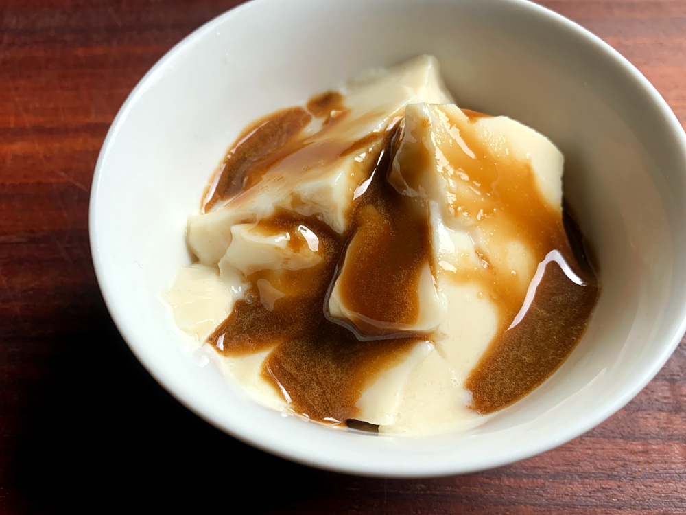 - Spoon out OR cut into small cubes if set in a container, and enjoy the jelly with your favourite fruit, sauce OR syrup. The photo above is Soy Milk Jelly and I added Strawberry Sauce.