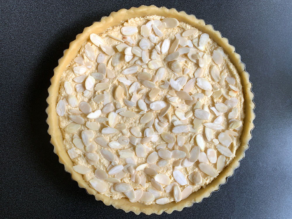 This recipe is actually almost identical to my ‘Fruit Tart’. I simply increased the amount of Almond Cream to fill the tart case, and covered it with Almond Flakes. This is a very simple tart. If you use a smaller tart pan, I recommend my ‘Easiest Sweet Shortcrust Pastry’. Almond Cream can be made with about same amount of Butter, Sugar, Eggs and Almond Meal. It would be easy for you to alter the amount.