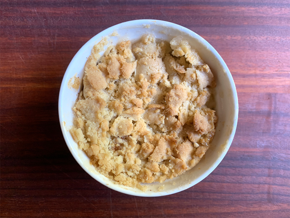 I received a message about one of my single-serving recipes. The person who wrote the message was happy to find my single-serving recipes as the person was living alone and looking for good recipes for just one person. Then I decided to share this Apple Crumble recipe. It’s a proper Apple Crumble. I wouldn’t want to heat up my oven to cook only this, but you might have an alternative cooking tool such as mini oven OR air fryer.
