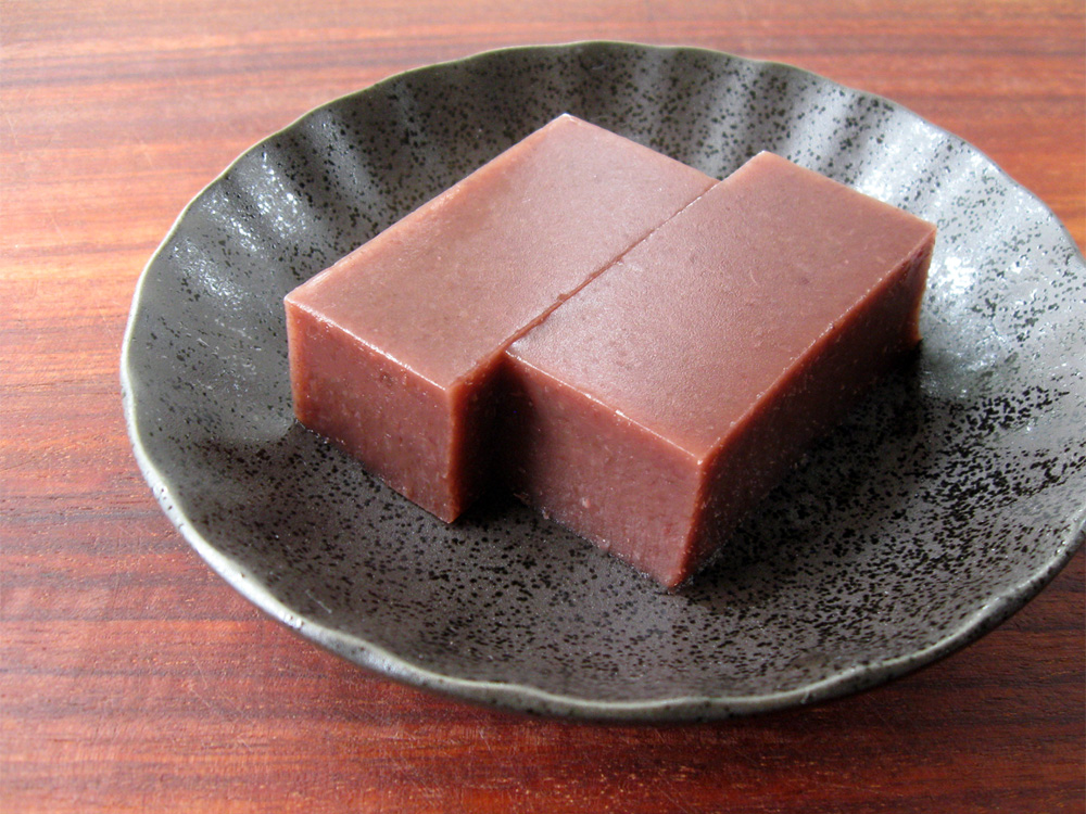 - When cool enough, cover with a lid or plastic wrap, and place in the fridge for a few hours or until completely set. If it is set in a container, cut into a serving size. Enjoy with nice green tea.