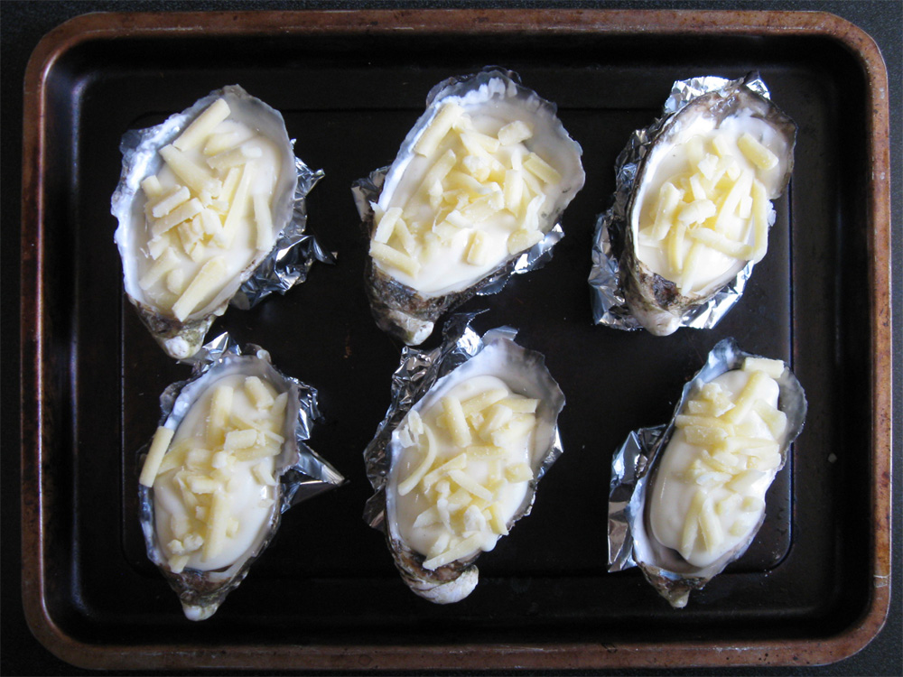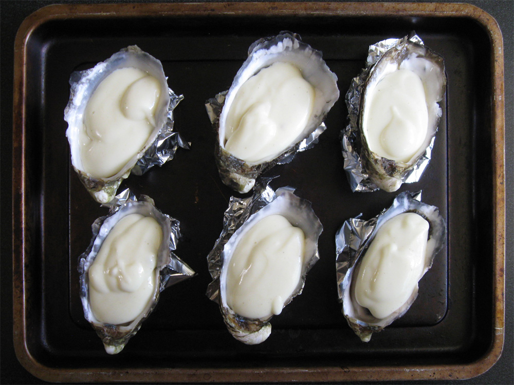 - Cover each Oyster with 2-3 teaspoons White Sauce.