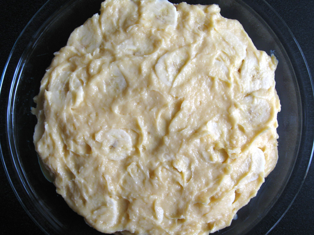 - Spread 1/3 of Custard thinly, arrange Banana slices, cover with 1/3 of Custard, arrange Banana slices again, then cover with remaining 1/3 of Custard.