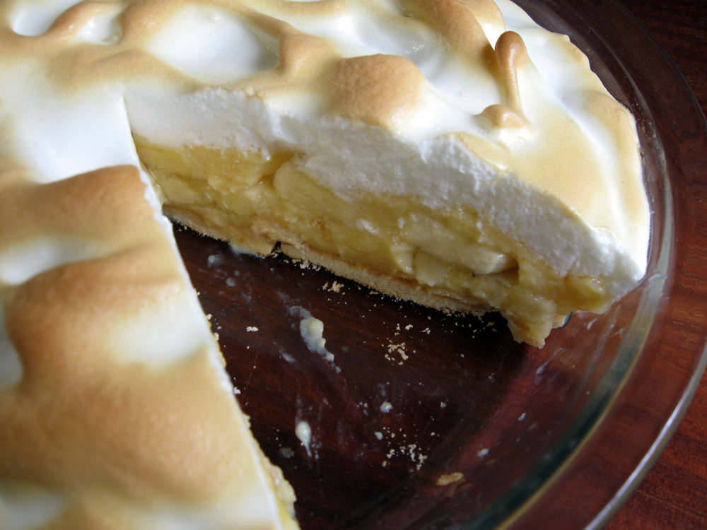 - Cover the Banana & Custard with Meringue, and bake for 10-15 minutes OR until top is nicely browned. When cool enough, place it in the fridge to chill for a few hours.