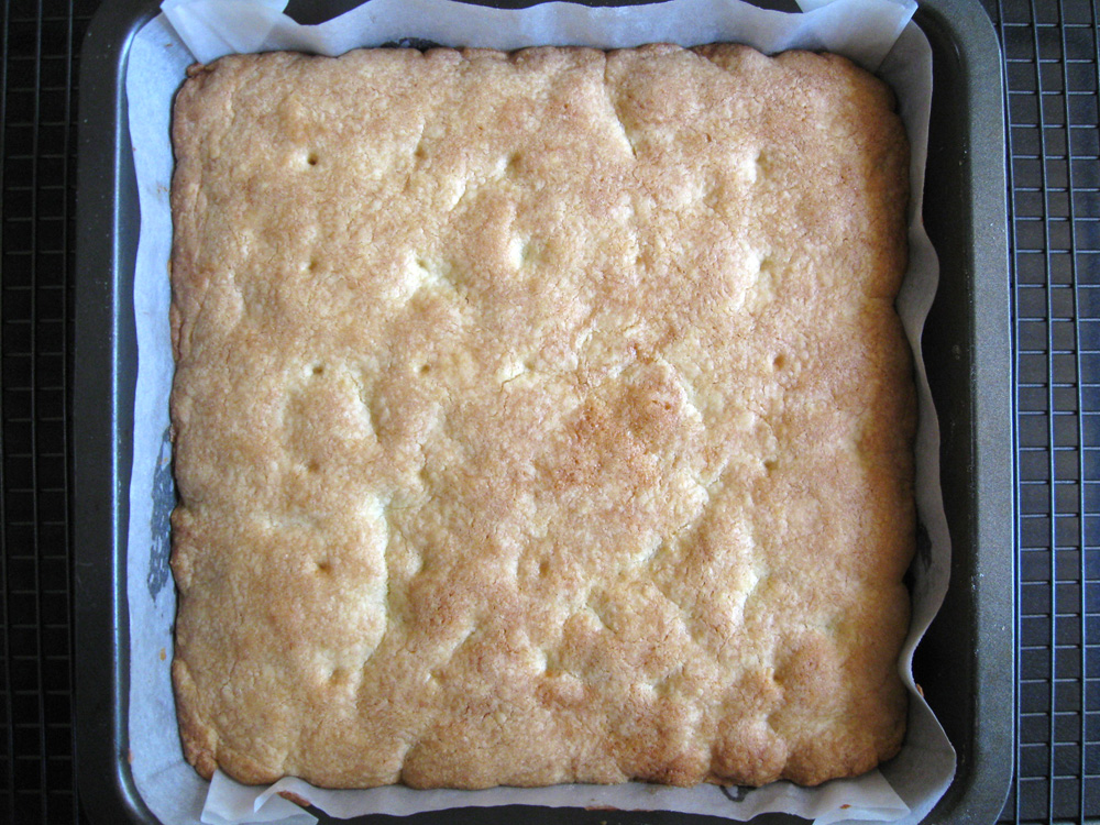 - Bake for 30 minutes or until cooked through and golden brown on top. Cool in the tin as this shortcake is very fragile. Serve slices with whipped Cream OR Ice Cream.