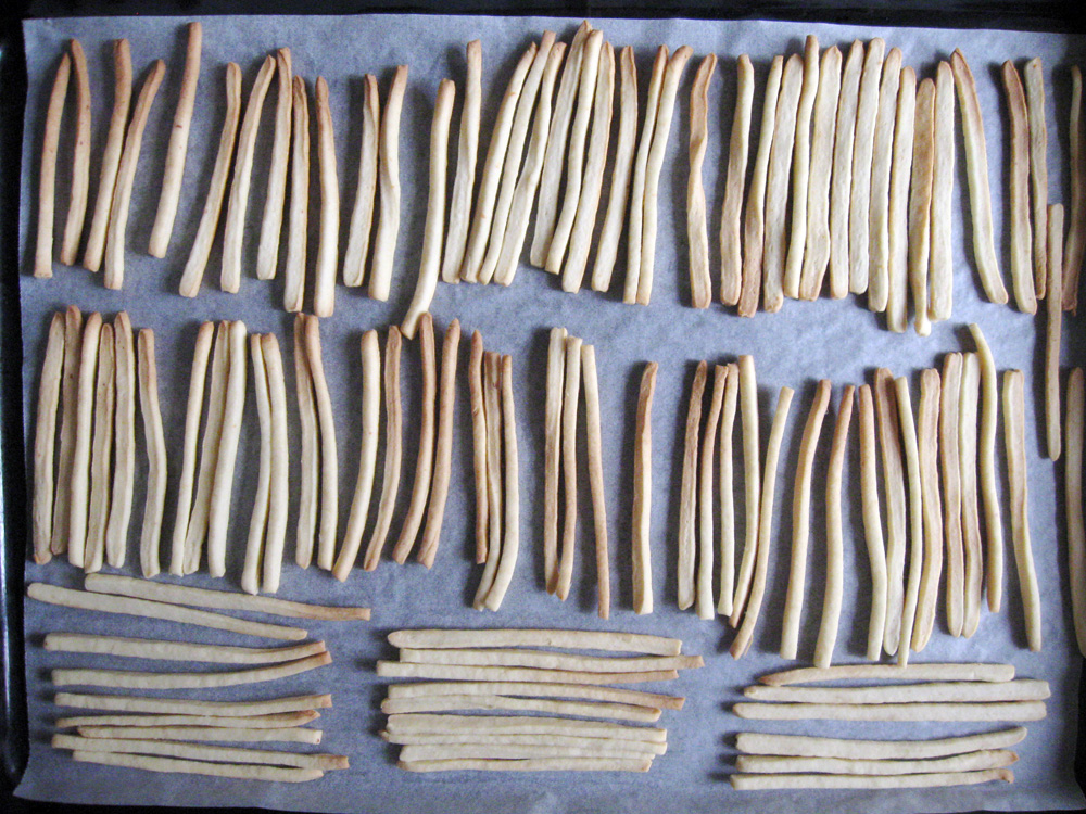 - Line a large baking tray (OR 2 baking trays) with baking paper, spread the sticks, try to place them straight, and bake in the pre-heated oven at 170℃ for 12 to 15 minutes OR until golden. Cool completely on a wired rack.