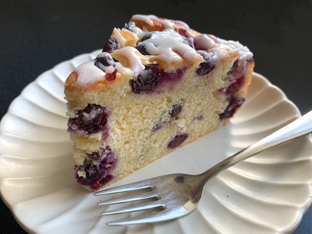 Blueberries are in season now, and fresh Blueberries are inexpensive. Today I added a generous amount of fresh Blueberries to my ‘Basic Butter Cake’. I added Lemon Icing on top. You may prefer dusting the cake with Icing Sugar instead, but Lemon Icing is highly recommended.