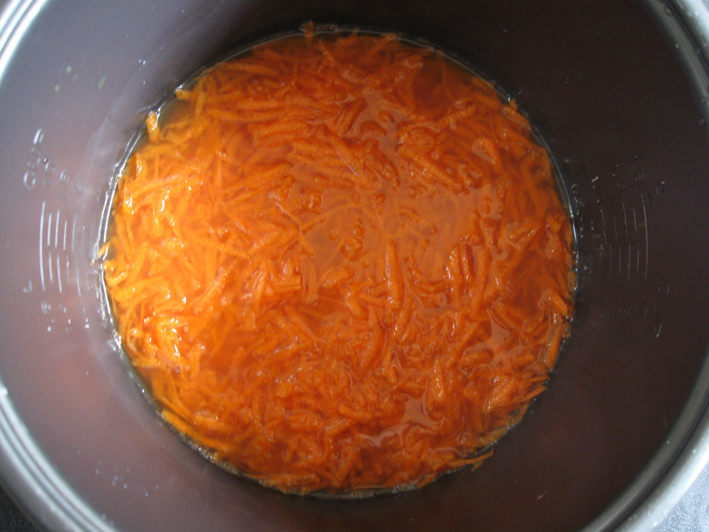 - Place Carrot over the Rice evenly. Press ‘COOK’ button to start cooking. When the rice is cooked, let it steamed for 10 minutes. Then loosen and mix gently.