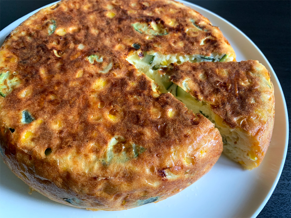 I was going to make Zucchini Frittata today, but I couldn’t bother grating it. I chopped up Zucchini into small pieces and I added Frozen Sweet Corn Kernels. It was very quick to prepare, I poured the mixture into rice cooker’s inner pot, then pressed the button to start cooking. Every time I cook Frittata …