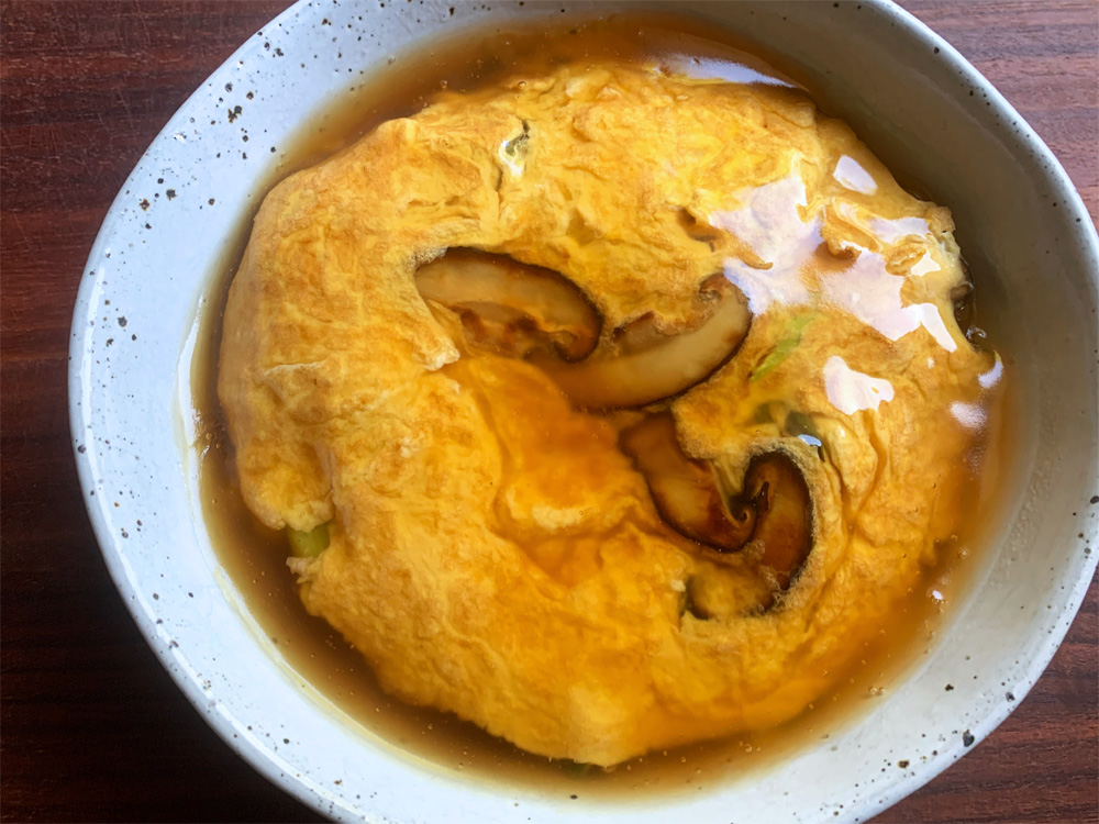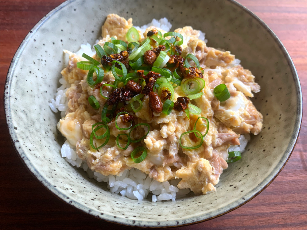Cook an Omelette and place it on warm cooked Rice, and pour the Sauce over. This dish can be made with Egg and Rice only, but I believe you have something to add to the Omelette. Today I added 1 Spring Onion and 1 Shiitake. Maybe you have Peas, OR Garlic Chives, etc. This is …