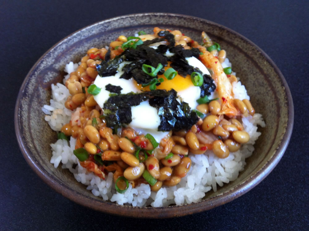I know some people don’t like ‘Natto’, the fermented Soy Beans, because of its smell. Well… there is at least one way to enjoy it. Mix with Kimchi that has knock-out smell! You won’t smell ‘Natto’ anymore. Add a microwave-cooked ‘Onsen Tamago’ Egg and it’s a very quick and nutritious meal. Makes 1 Serving Ingredients …