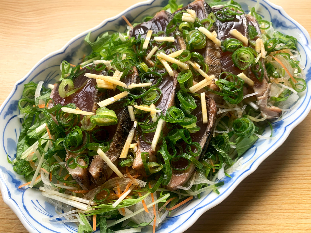 Katsuo (Bonito OR Skipjack Tuna) is a very popular fish in Japan, and my favourite way to enjoy it is ‘Tataki’ that is slightly seared, often over charcoal, and eaten with ‘Ponzu’. I love to eat it with plenty of fresh salad vegetables, and fresh Garlic is essential. Cut it into fine strips and scatter …