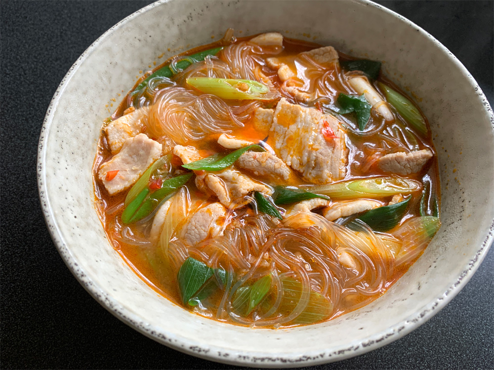 Here is another simple Harusame Soup for you to try. It’s super quick and easy to prepare. First you make the soup. You can season it as spicy as you want. Today I added 1 & 1/2 teaspoons Toban Djan (Chilli Bean Sauce) and some Rāyu (Chilli Oil), and it was quite hot and still …