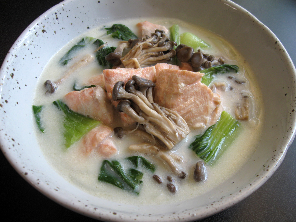 When I make Japanese soup, I don’t use Oil. I cook ingredients in stock, then season with Soy Sauce, Miso, etc. I cook this ‘Salmon & Bok Choy Creamy Soup’ in the same way, so this soup is Oil-Free. I use Corn Starch (OR Potato Starch) to thicken the soup, so it is Gluten-Free. Use …