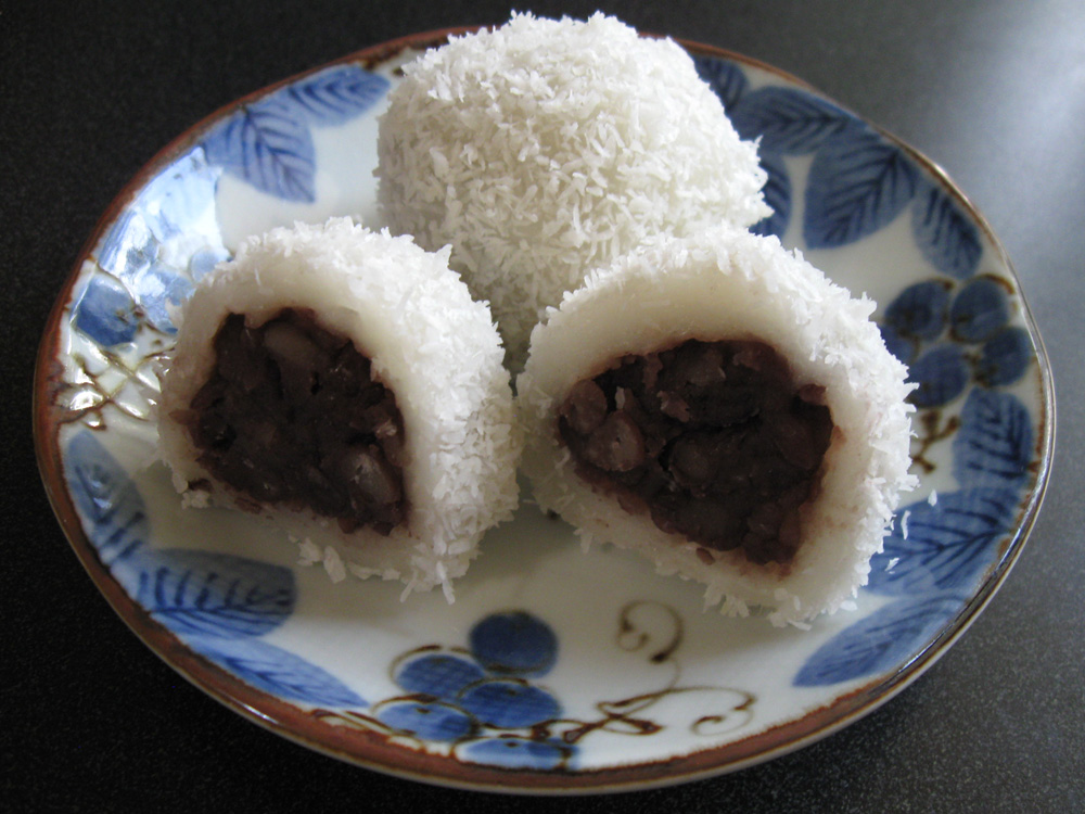 These dumplings are almost identical to my ‘Daifuku Mochi’, but they are made in a totally different way. This time, I used ‘Azuki’ Red Bean Paste for the filling, but Custard is also recommended. The sweet pastes that can be made from Canned Butter Beans are also very nice. The Coconut coating of these dumplings …