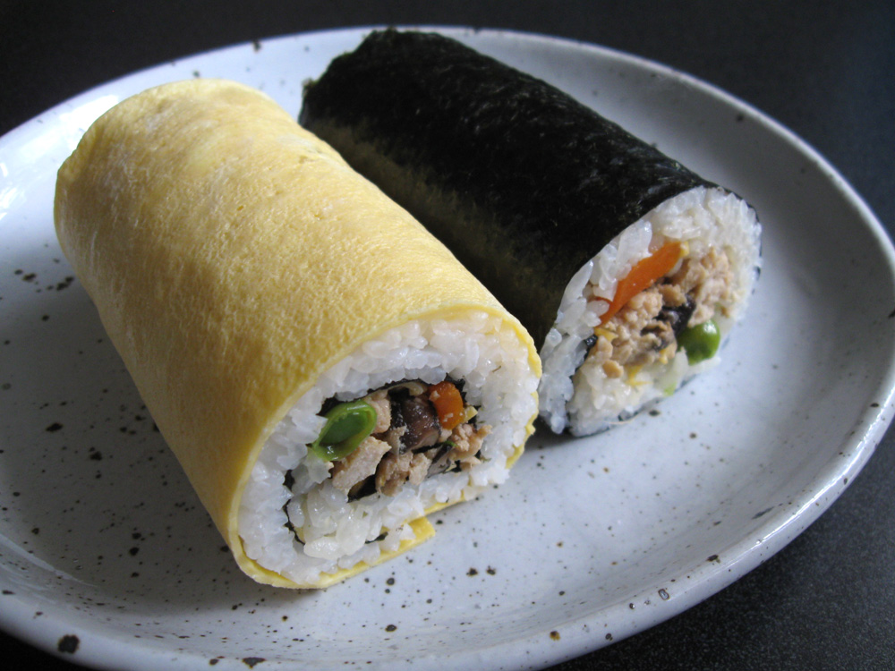 You like Sushi Rolls? Using exactly the same ingredients, you can make ‘Onigiri’ Rice Balls. Mix the filling ingredients with Sushi Rice, form into ‘Onigiri’, and wrap with Nori in your preferred way. Perfect for lunch or snack, much easier to make, and tastes the same. You don’t know how to make triangular balls? Then …