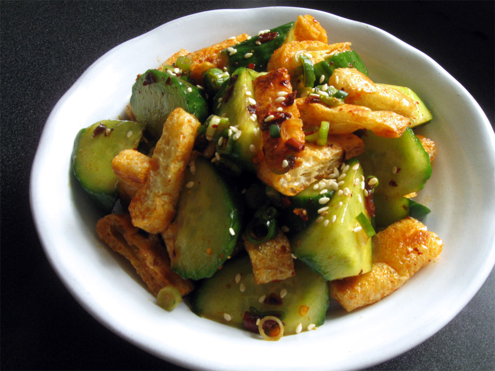 I have been crazy about ‘Lao Gan Ma’ brand Crispy Chilli Oil lately. I am using it for very many things. It seems it is not spicy enough for some people, but probably that’s the reason why I enjoy it so much. Today I mixed it with ‘Ponzu’ to make a sauce and dressed Cucumber …