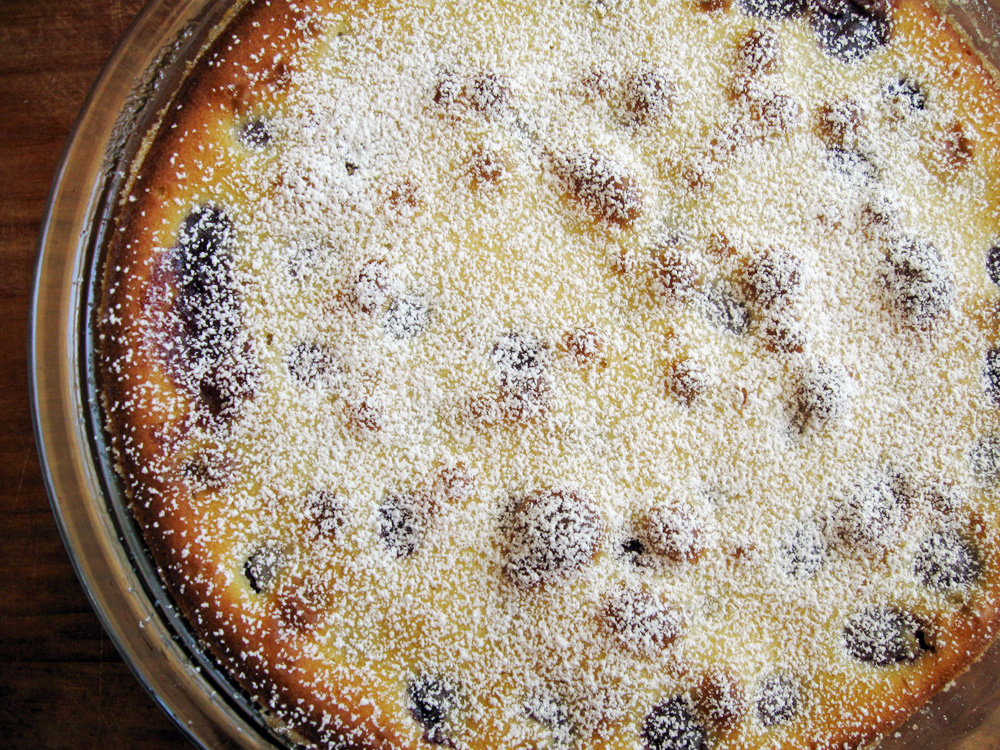 - Pour the mixture over the cherries, and bake for 30 to 40 minutes, or until golden and cooked through.