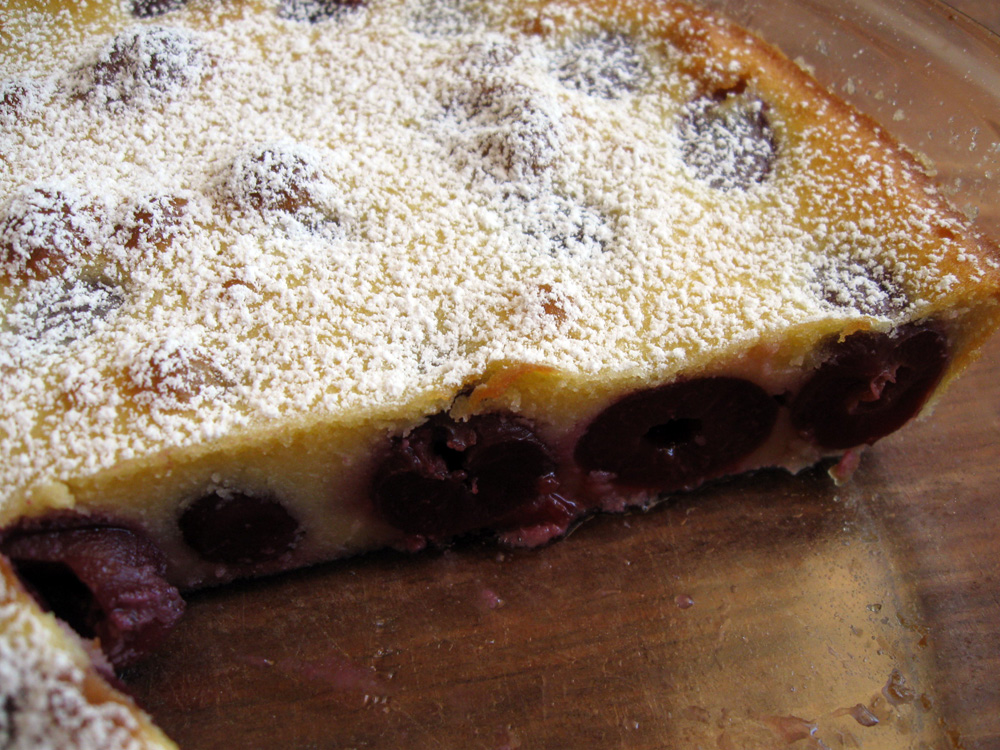 This is a humble fruit tart with no crust. You can make with any fruit in season. This time I used Cherries but Peaches, Nectarines and Ripe Pears are also very good. Alter the amount of Sugar depending on the sweetness of the fruit.