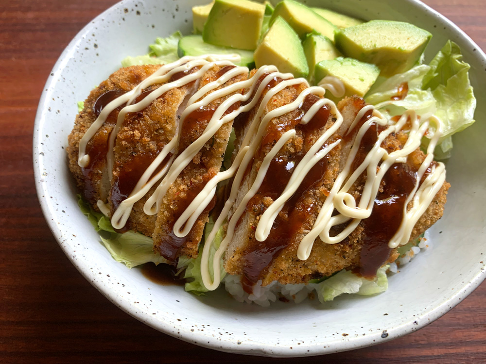 Since Sushi Rolls became very popular in Melbourne where I live, I often come across unique Sushi Rolls. One of my favourites is Chicken ‘Katsu’ Rolls. One day I craved it but I didn’t want to bother making Sushi Rolls, so I made a Sushi Rice Bowl using the same ingredients. Chicken ‘Katsu’ (Fried Crumbed Chicken Breast) and sweet and sour Sushi Rice are a great match.