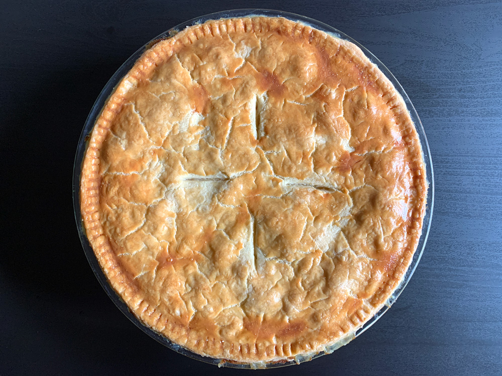 - Place the pie dish on a baking tray and bake for 35 to 40 minutes OR until nicely browned and cooked through. If it is getting dark too quickly, lower the heat.