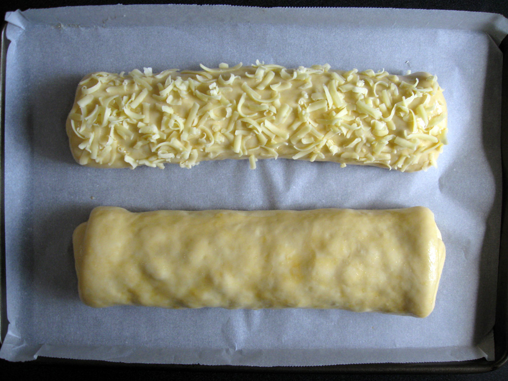 - Preheat oven to 180℃. Gently brush with saved Egg. You may wish to coat with Grated Tasty Cheese. *Note: I coated one roll with Egg and the other with Egg and Cheese.
