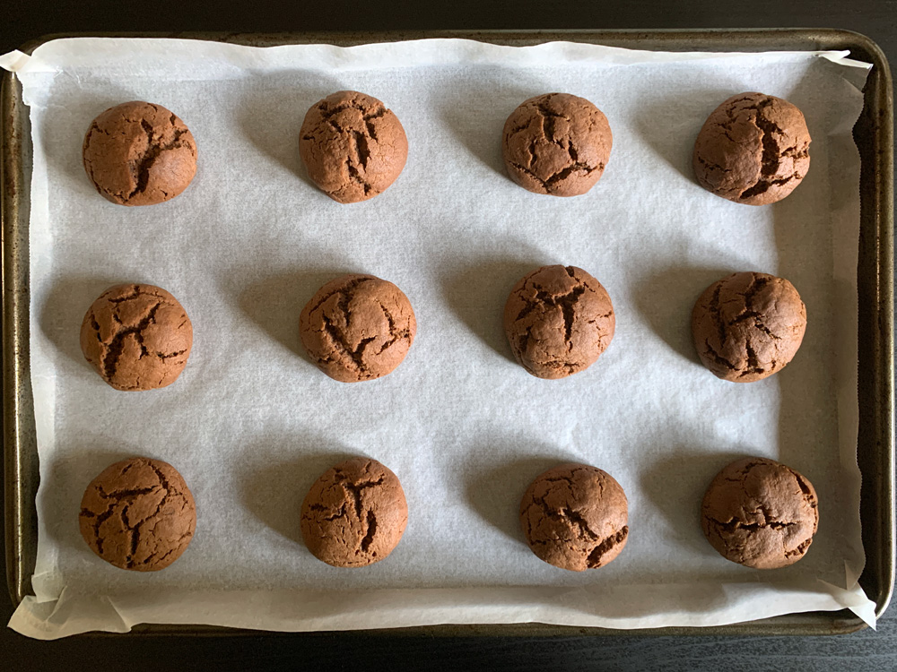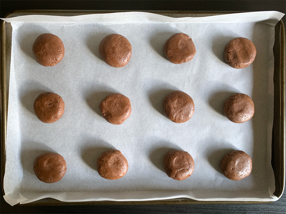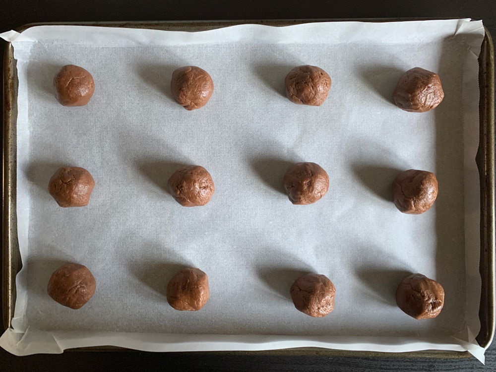 - Roll the dough into 24 balls, about 3cm size, and place on the prepared tray(s). *Note: You need to flatten the balls into discs for flatter and larger Biscuits. See the difference in the photos below.