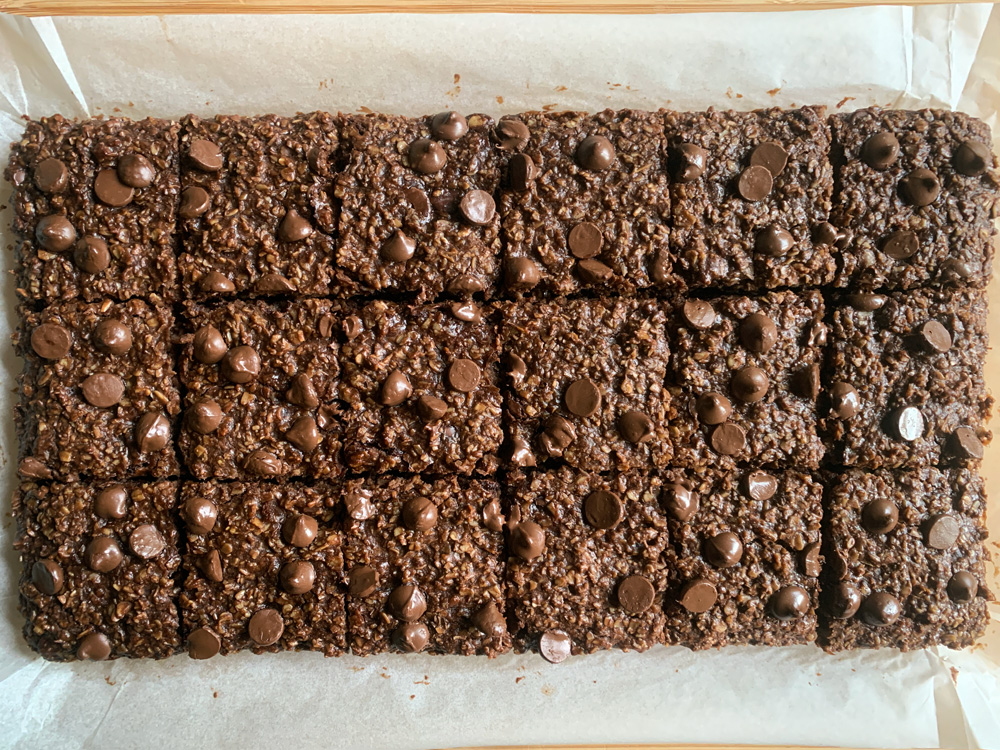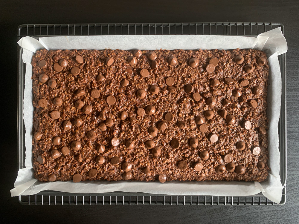 - Allow to cool in the pan until slightly firmer, then carefully transfer to a wire rack, and cool. When cooled, cut into squares.