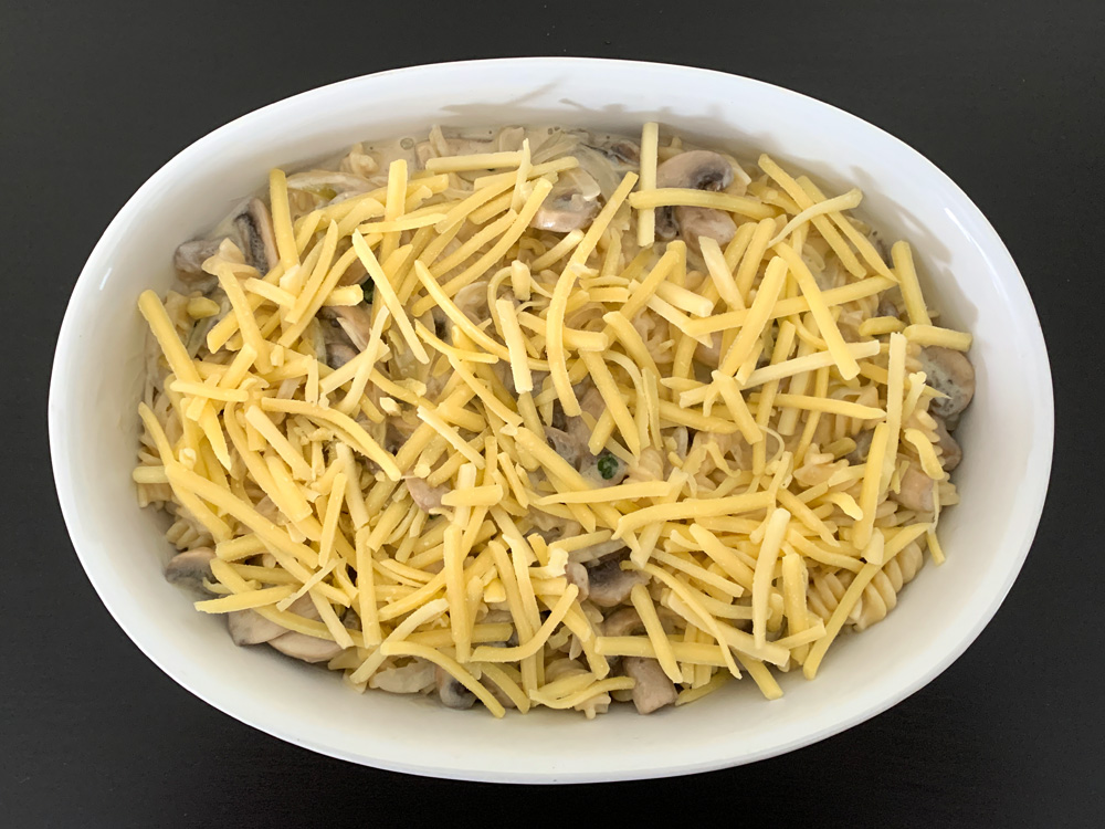- Combine the Sauce and drained Pasta. Spoon into a baking dish, scatter shredded Cheese and bake for 20 minutes OR until golden.
