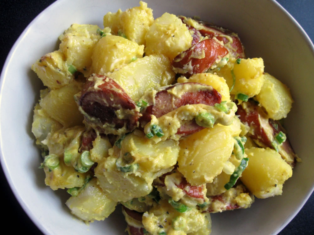 The sausages in Japan are mainly European style smoked sausages. I came across uncooked raw English style sausages in Australia for the first time. I recommend to use smoked sausages for this dish. I use Kransky sausages that are commonly available in Melbourne where I live. This curry flavoured potato salad is one of my family’s favourite dishes. Every time I cook it, my family members happily enjoy it.