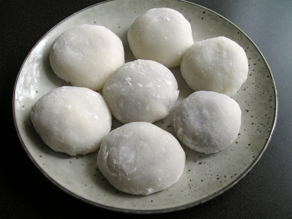 - Remove excess Potato Starch from Mochi and divide into 10 portions.