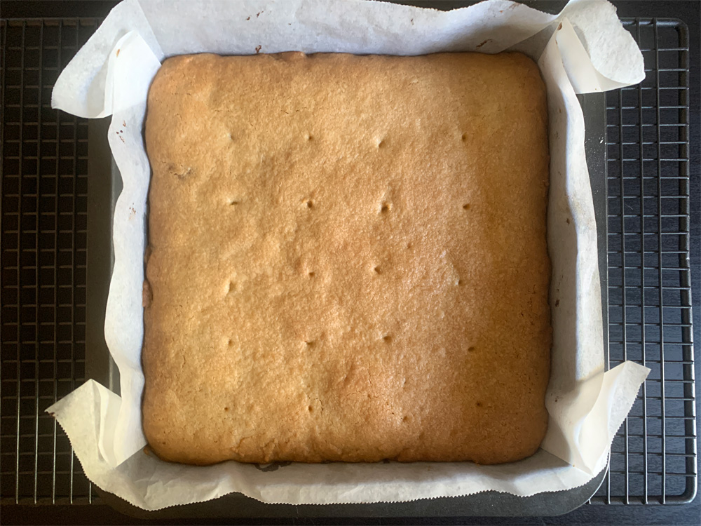 - Bake for 30 minutes or until cooked through and golden brown on top. Cool in the tin as this shortcake is very fragile, then cool on a wire rack. Cut into squares and serve.