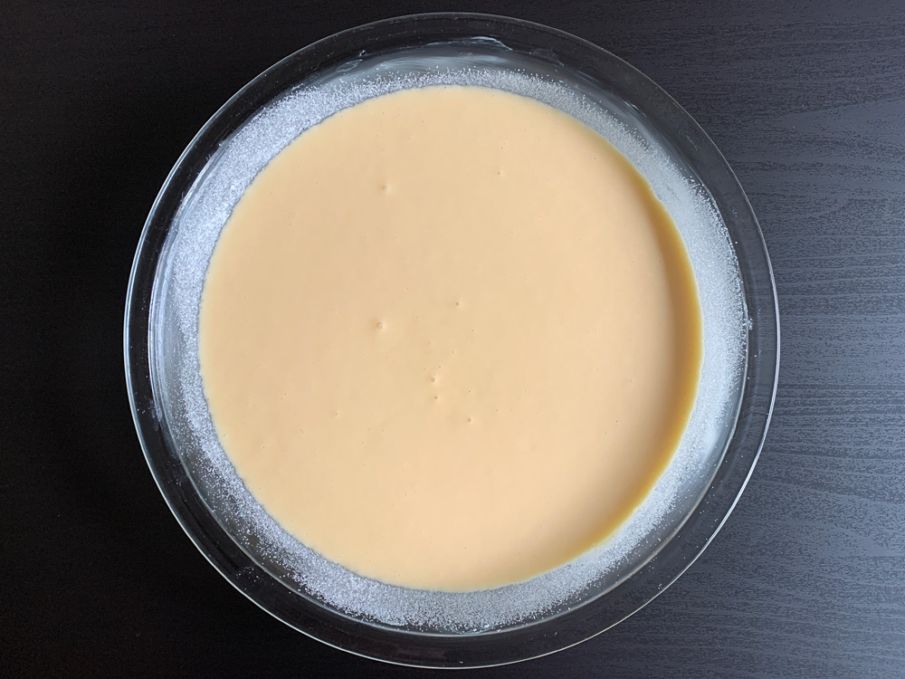 - Place Sugar, Salt, Eggs, Cream, Vanilla Extract in a bowl, mix with a whisk, sift in Flour and mix well until smooth. Add melted Butter and combine well. Pour the mixture in the prepared pie dish.