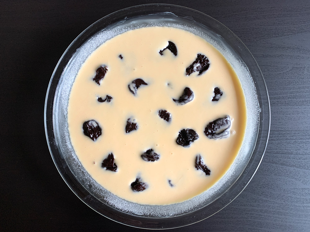 ‘Clafoutis’ is a simple French dessert and it is really quick and easy to make. Traditionally Clafoutis is made with Cherries, but I use a variety of Fruit. Ripe Pears, Peaches and Berries are perfect. Today I made this Prune version, because I wanted to make a dessert using Dried Prunes. It was absolutely delicious.