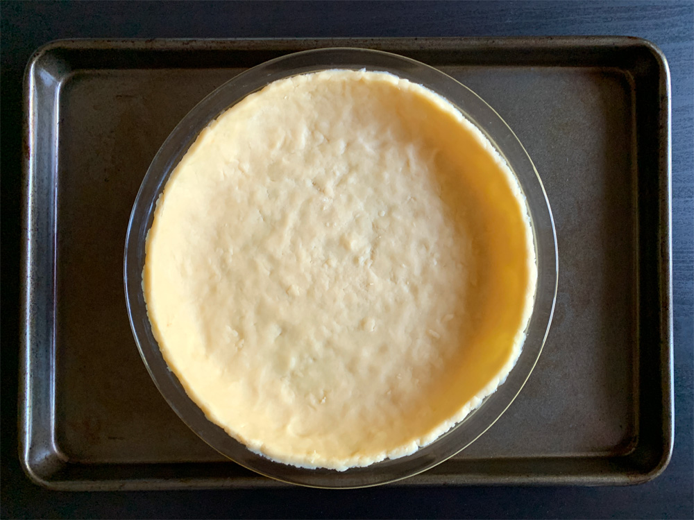 - Preheat oven to 160℃. Place the frozen sweet pie case on an oven tray. It will thaw while you prepare the filling.