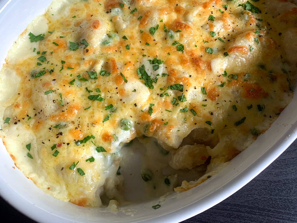 In a supermarket, I saw a young man buying Gnocchi and choosing a tub of sauce. He chose the white sauce. I wanted to teach him this recipe. Read the instructions below. It is so easy. While you are boiling water to cook Gnocchi, the sauce will be done. If you don’t bake it, it would be even easier and quicker.