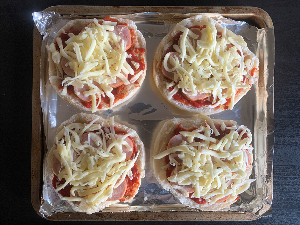 - Cut English Muffin(s) in half, place on a baking tray with the cut side facing up.