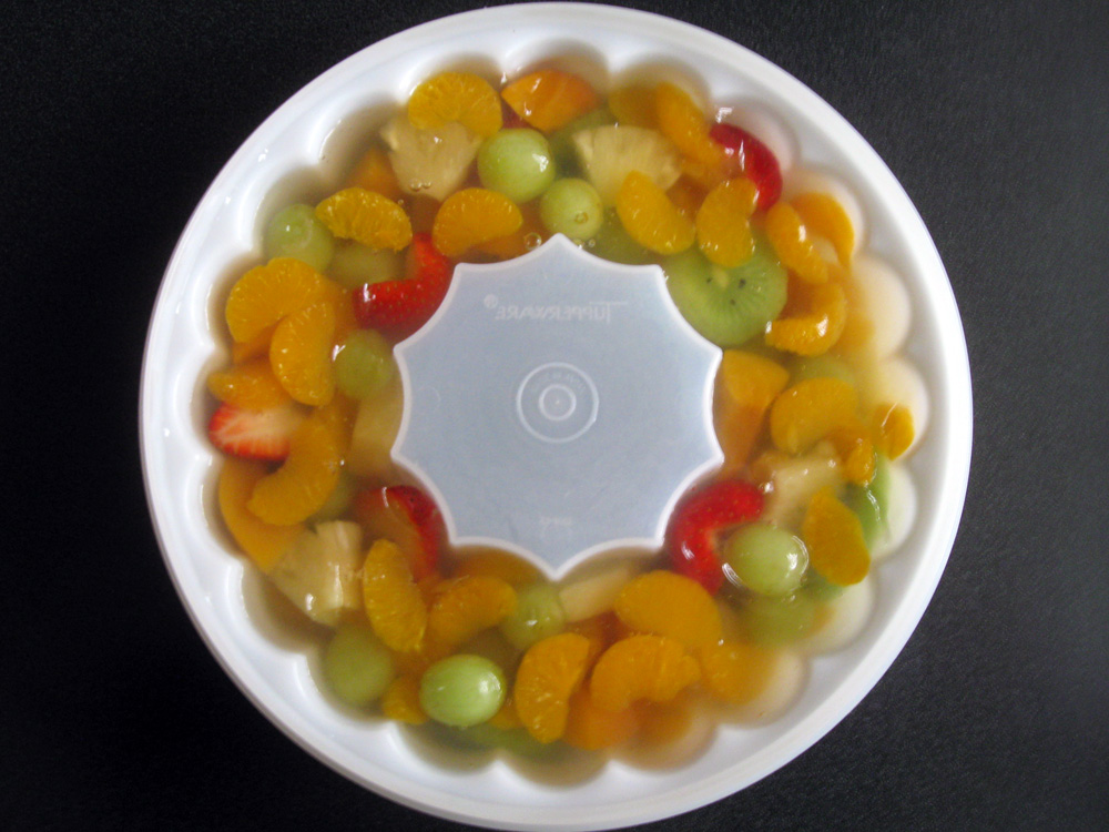 - Gradually pour the jelly mixture over the Fruit, trying to remove the bubbles trapped between Fruit. You might be able to add extra Fruit.