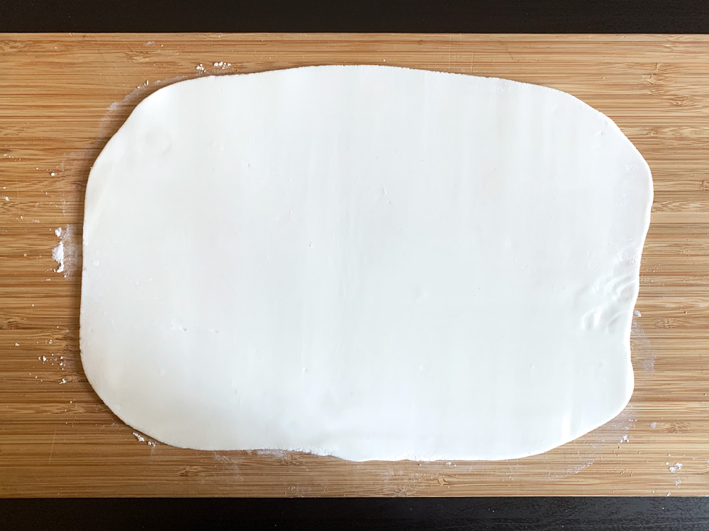 - Dust a flat surface with Potato Starch (OR Gluten-Free Plain Flour), roll the dough into a 3-4mm thick rectangular shape.