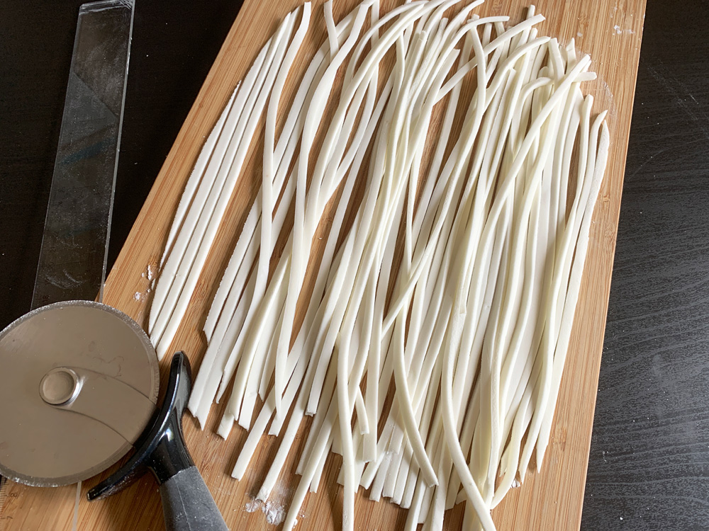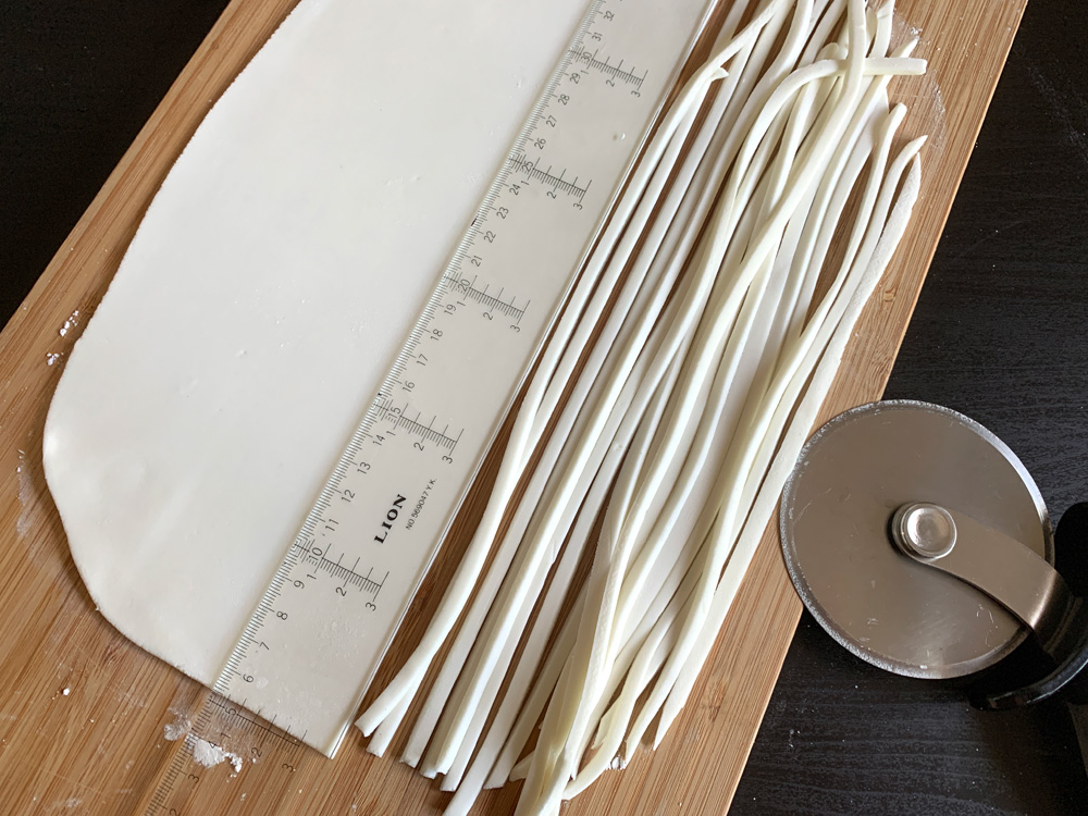 - Slice it into 3-4mm wide noodles. I used a pizza cutter and a ruler.