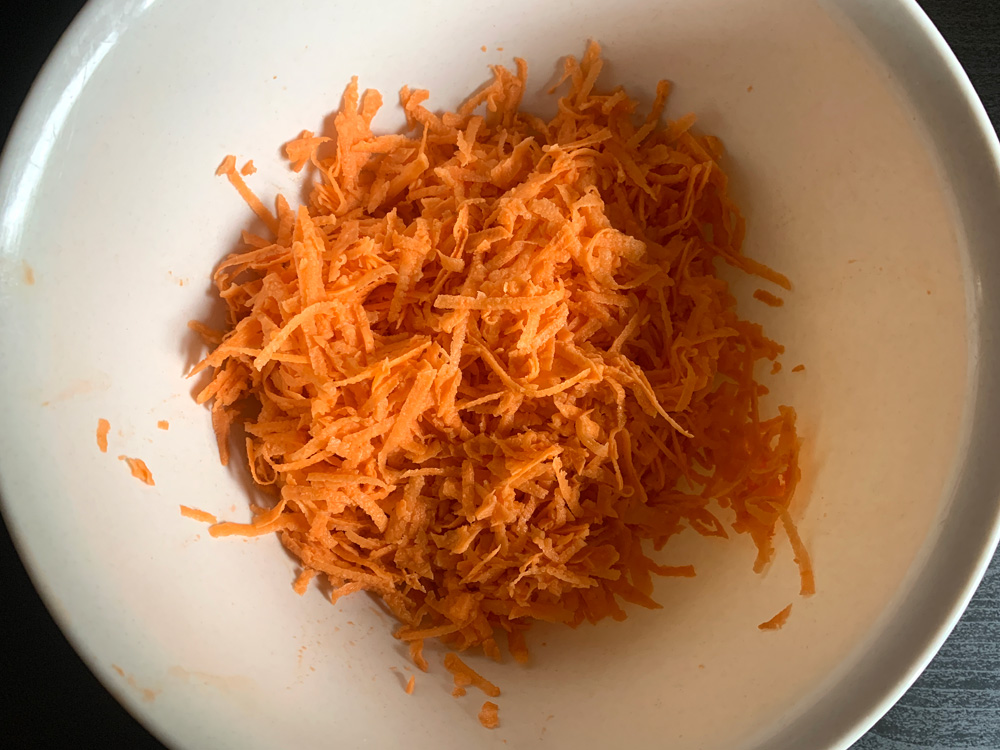 - Peel Sweet Potato and coarsely grate it.