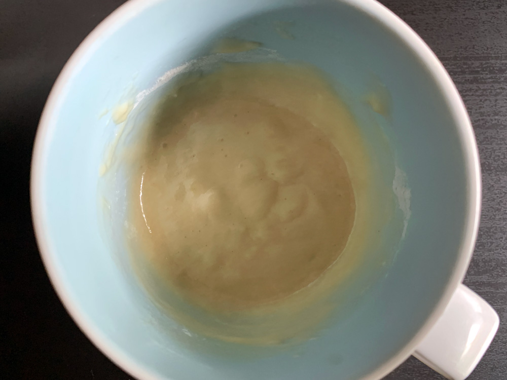 - Place Butter and Milk in a large mug, microwave for 30 seconds OR until Butter melts. Add Sugar and Self-Raising Flour, and mix well until smooth.