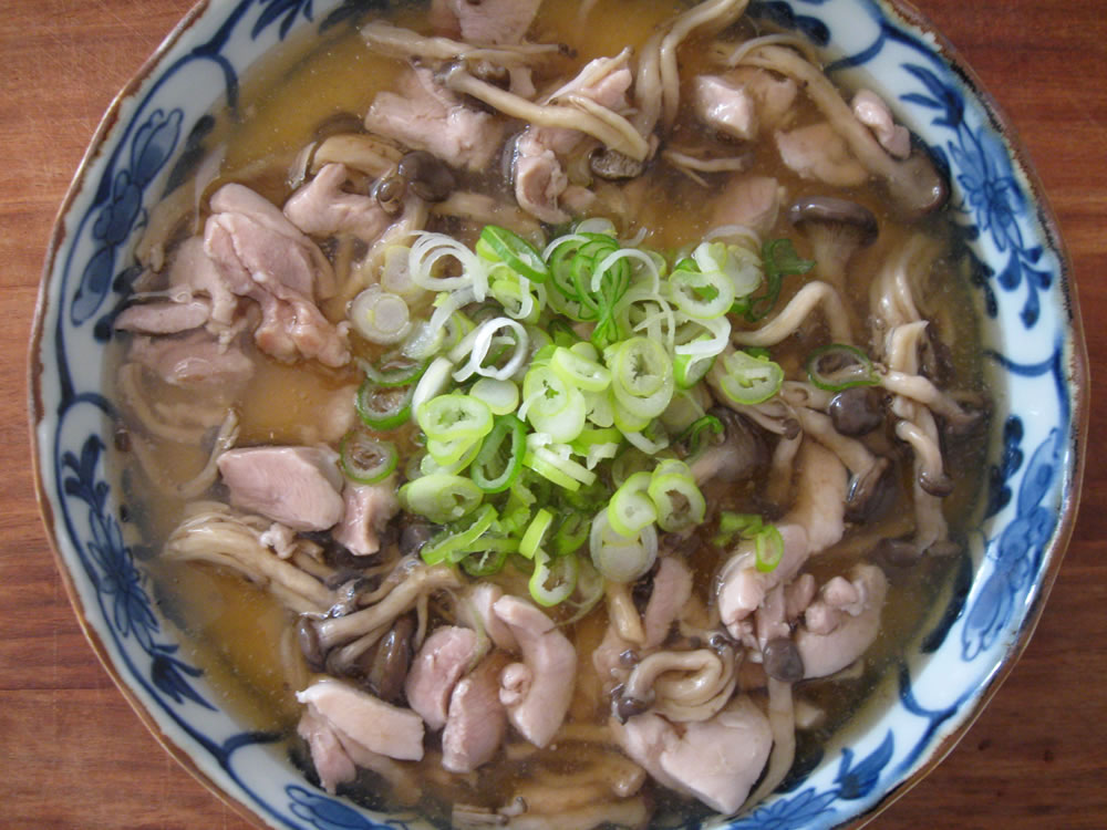 - To make sauce, heat Stock and Ginger in a saucepan, season with Salt, Soy Sauce and Mirin. When it is boiling, add Chicken and Shimeji. Mix Potato Starch and Water in a small bowl and gradually add, stirring, to thicken the sauce. You might not need to use all the potato starch mixture.