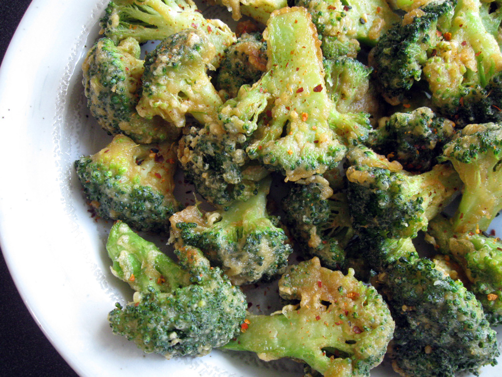 - Fry Broccoli pieces in relatively hot oil in batches. When nicely browned, transfer to a wire rack to remove excess oil. *Note: DO NOT cook for too long. Broccoli should retain crunchiness.